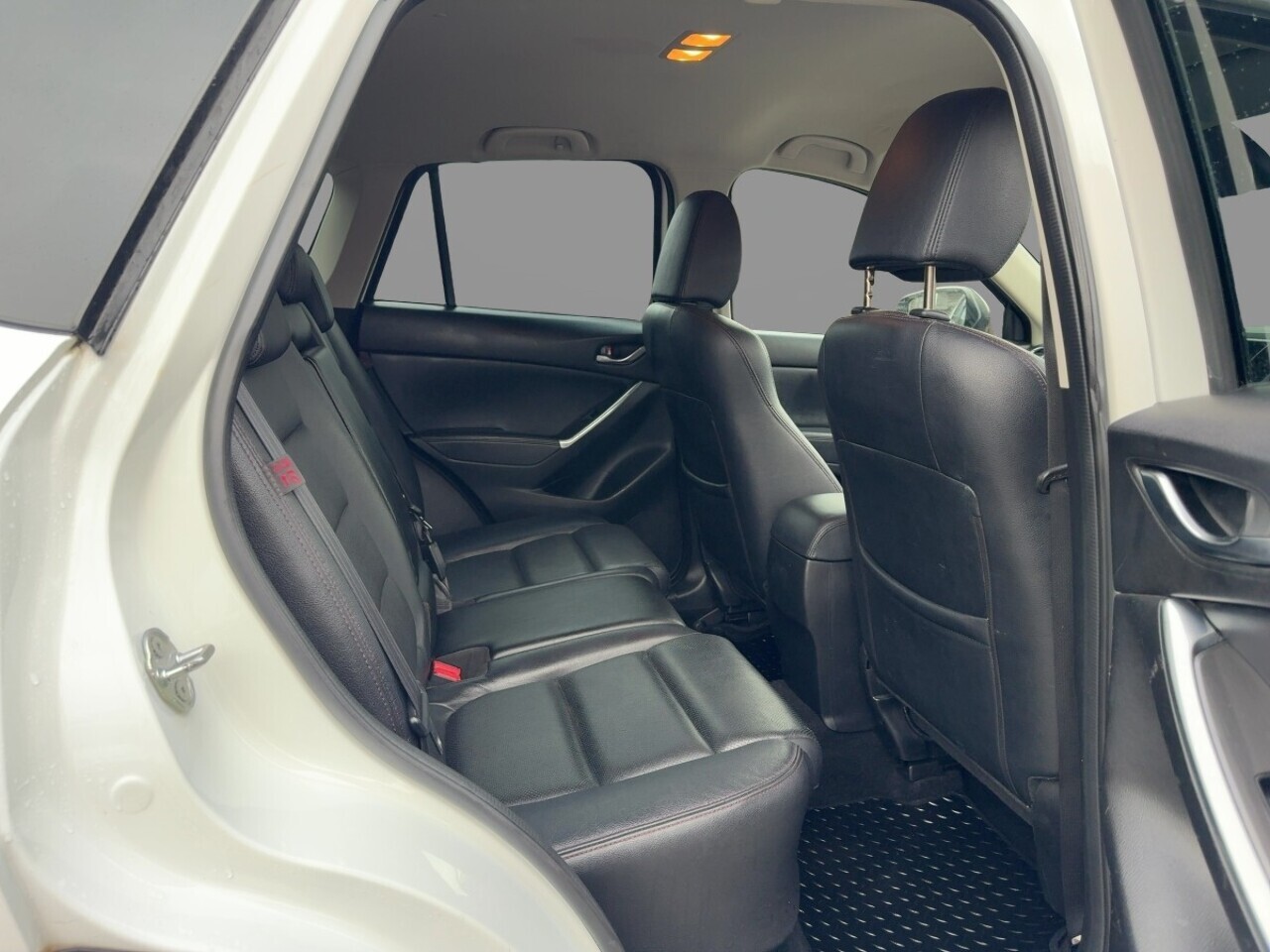 The interior of this Mazda is equipped with luxurious black leather seats, providing comfort and style for all passengers. The standard specification includes a range of features such as dual zone climate control, DAB radio, cruise control, reversing camera, and a premium BOSE sound system. Safety features like emergency brake assist, traction control, and lane departure warning ensure a safe driving experience.